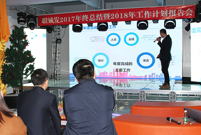 创始人龙平芳女士也通过PPT对公司17年作出的成绩进行了总结,分析了公司在过去的一年中,企业发展所存在的一系列问题与不足,并将在2018年得到全面解决与完善。公司在2018年将把重点放在企业战略、创新研发、品牌建设三大板块,为企业的未来发展布局。新的一年里,公司计划将持续性的加大产品研发投入,用创新型及实用性的新产品拓展市场,提升企业的产品竞争力,进一步提升产品品牌认知度、认可度和美誉度,树立良好的企业品牌形象。也将会把人才战略作为2018年工作重点,加大人才引进力度,加强人才培养和人才储备,从人才福利、企业文化、员工生活方面着手,让所有leyu.乐鱼人都能看到自己的未来。解说过程中,大家纷纷拿起手机,将内容同步录了下来,不得不说,决策者的规划既有理论的高度,又有实践的深度。